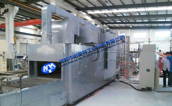 高溫氣流快速熱風(fēng)循環(huán)系統(tǒng),使工件表面快速受到熱傳遞,并將熱量均勻分配在烘干室內(nèi),升溫速度快,溫度分布均勻,采用連續(xù)不間斷的工作方式。